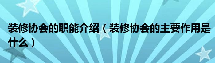 装修协会的职能介绍(装修协会的主要作用是什么)