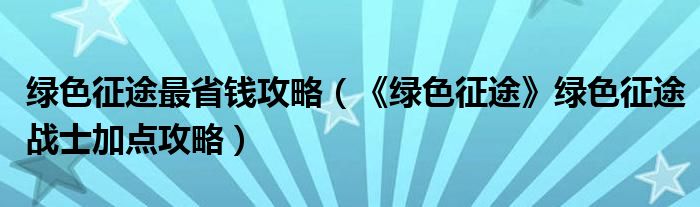 绿色征途最省钱攻略(《绿色征途》绿色征途战士加点攻略)