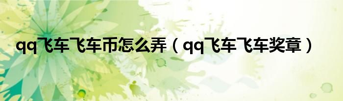 qq飞车飞车币怎么弄(qq飞车飞车奖章)