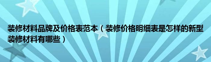 装修材料品牌及价格表范本(装修价格明细表是怎样的新型装修材料有哪些)
