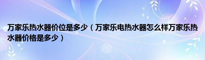 万家乐热水器价位是多少(万家乐电热水器怎么样万家乐热水器价格是多少)