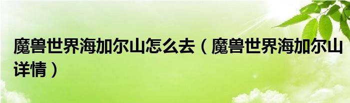 魔兽世界海加尔山怎么去(魔兽世界海加尔山详情)