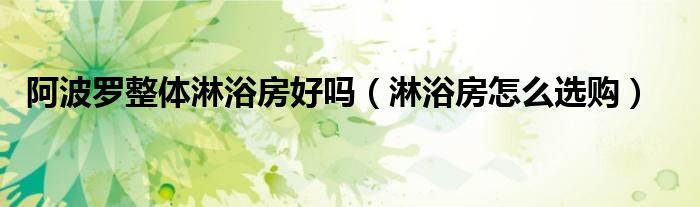 阿波罗整体淋浴房好吗(淋浴房怎么选购)