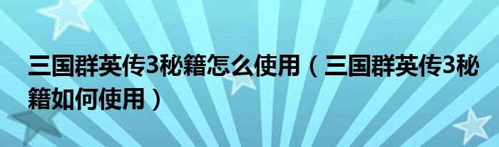 三国群英传3秘籍怎么使用(三国群英传3秘籍如何使用)