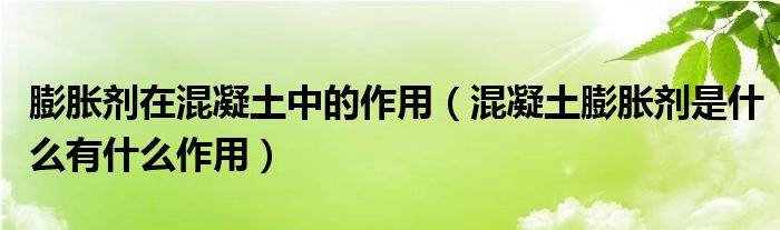 膨胀剂在混凝土中的作用(混凝土膨胀剂是什么有什么作用)