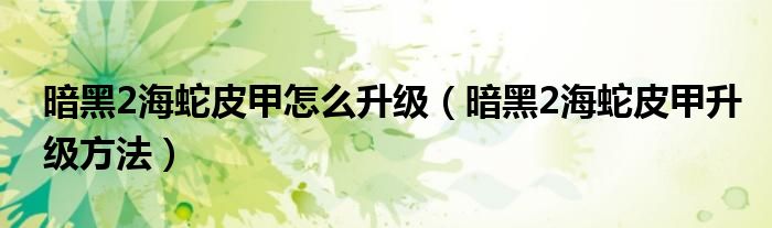 暗黑2海蛇皮甲怎么升级(暗黑2海蛇皮甲升级方法)