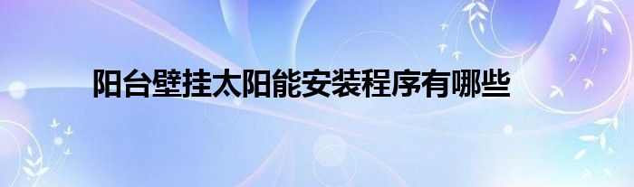 阳台壁挂太阳能安装程序有哪些