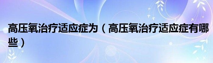 大家好,linda来为大家解答以上的问题。高压氧治疗适应症为,高压氧治疗适应症有哪些很多人还不知道,现在让我们一起来看看吧!