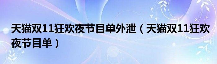 天猫双11狂欢夜节目单外泄(天猫双11狂欢夜节目单)