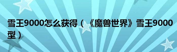 雪王9000怎么获得(《魔兽世界》雪王9000型)