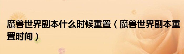 魔兽世界副本什么时候重置(魔兽世界副本重置时间)