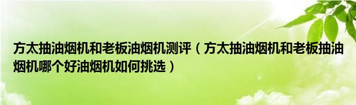 方太抽油烟机和老板油烟机测评(方太抽油烟机和老板抽油烟机哪个好油烟机如何挑选)