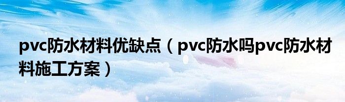 pvc防水材料优缺点(pvc防水吗pvc防水材料施工方案)
