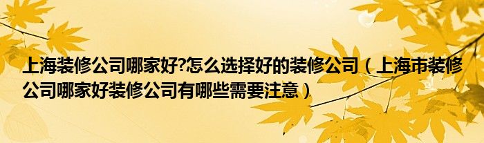上海装修公司哪家好?怎么选择好的装修公司(上海市装修公司哪家好装修公司有哪些需要注意)