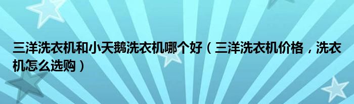 导读 大家好,今天乐乐来为大家解答以上问题。三洋洗衣机和小天鹅洗衣机哪个好,三洋洗衣机价格,洗衣机怎么选购很多人还不知道,现在让我们一起