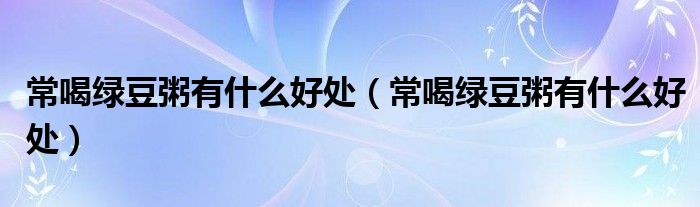 常喝绿豆粥有什么好处(常喝绿豆粥有什么好处)