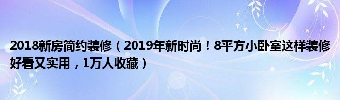 2018新房简约装修(2019年新时尚!8平方小卧室这样装修好看又实用,1万人收藏)