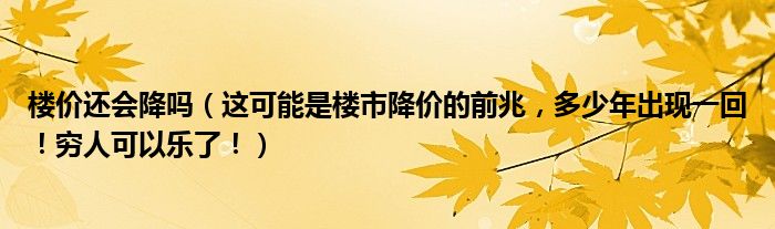 楼价还会降吗(这可能是楼市降价的前兆,多少年出现一回!穷人可以乐了!)