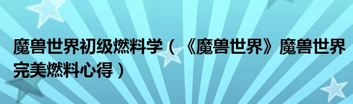 魔兽世界初级燃料学(《魔兽世界》魔兽世界完美燃料心得)