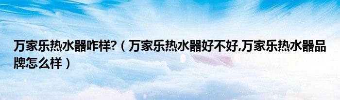 万家乐热水器咋样?(万家乐热水器好不好,万家乐热水器品牌怎么样)