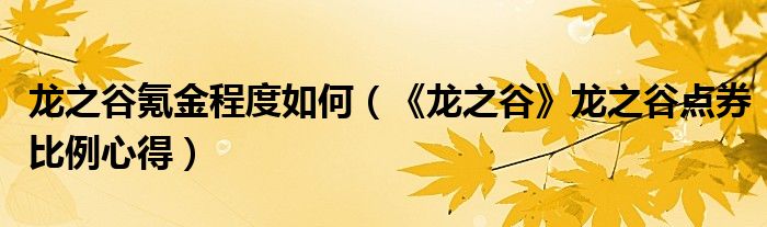 龙之谷氪金程度如何(《龙之谷》龙之谷点券比例心得)