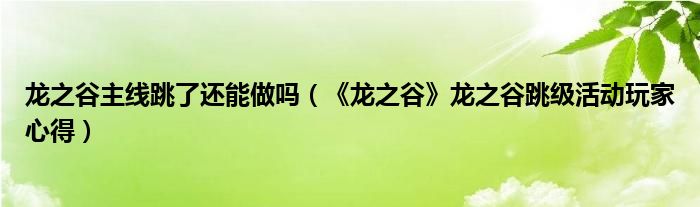 龙之谷主线跳了还能做吗(《龙之谷》龙之谷跳级活动玩家心得)