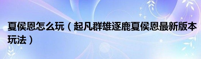 夏侯恩怎么玩(起凡群雄逐鹿夏侯恩最新版本玩法)