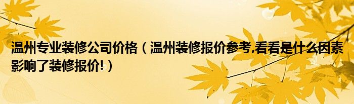 温州专业装修公司价格(温州装修报价参考,看看是什么因素影响了装修报价!)