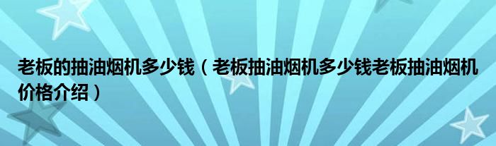 老板的抽油烟机多少钱(老板抽油烟机多少钱老板抽油烟机价格介绍)