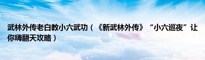 导读 大家好,太太来为大家解答以上问题。武林外传老白教小六武功,《新武林外传》“小六巡夜”让你嗨翻天攻略很多人还不知道,现在让我们一起来