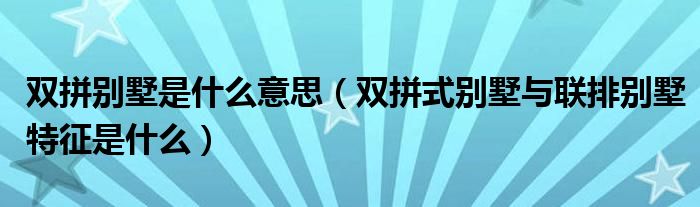 双拼别墅是什么意思?