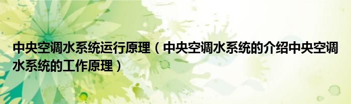 中央空调水系统运行原理(中央空调水系统的介绍中央空调水系统的工作原理)