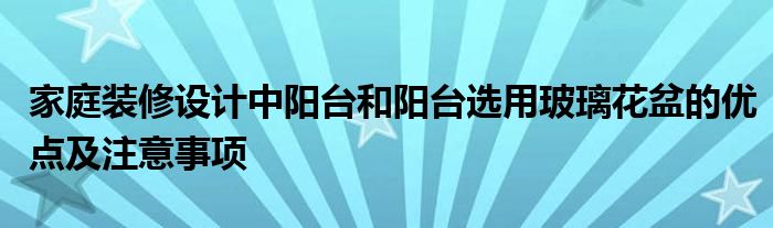 导读 大家好,今天乐乐来为大家解答以上问题。家庭装修设计中阳台和阳台选用玻璃花盆的优点及注意事项很多人还不知道,现在让我们一起来看看吧!