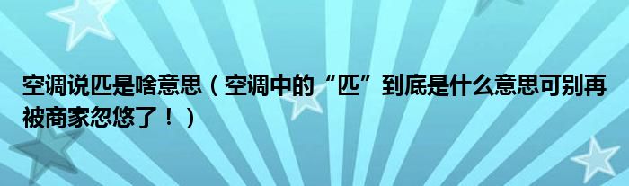 大家好,今天乐乐来为大家解答以上问题。空调说匹是啥意思,空调中的“匹”到底是什么意思可别再被商家忽悠了!很多人还不知道,现在让我们一起来看看吧!