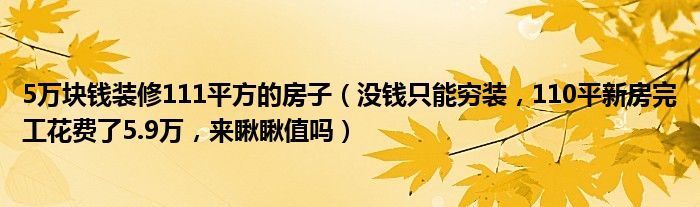 大家好,今天乐乐来为大家解答以上问题。5万块钱装修111平方的房子,没钱只能穷装,110平新房完工花费了5.9万,来瞅瞅值吗很多人还不知道,现在让我们一起来看看吧!