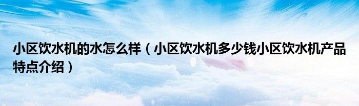 小区饮水机的水怎么样(小区饮水机多少钱小区饮水机产品特点介绍)