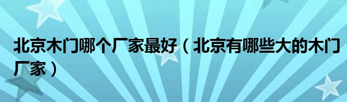 北京木门哪个厂家最好(北京有哪些大的木门厂家)