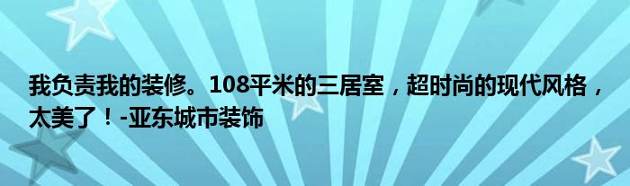 导读 大家好,今天乐乐来为大家解答以上问题。我负责我的装修。108平米的三居室,超时尚的现代风格,太美了!-亚东城市装饰很多人还不知道,现在