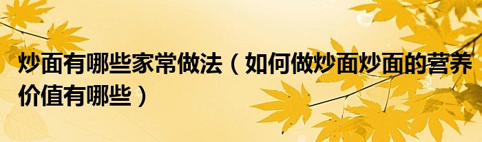 炒面有哪些家常做法(如何做炒面炒面的营养价值有哪些)
