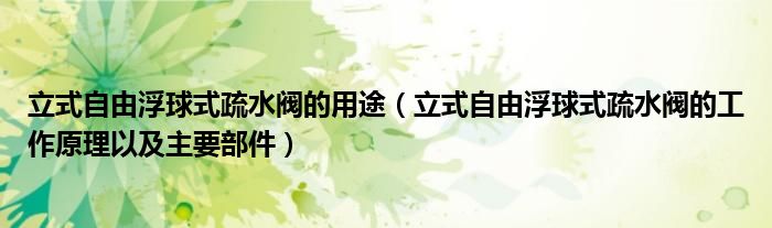 立式自由浮球式疏水阀的工作原理以及主要部件?