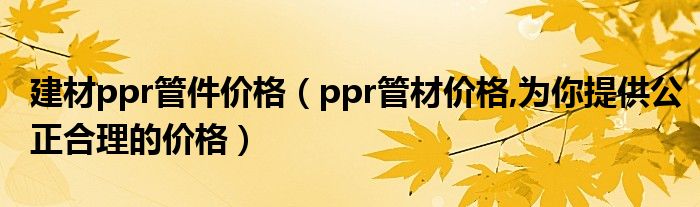 建材ppr管件价格(ppr管材价格,为你提供公正合理的价格)