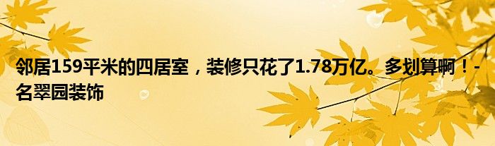 大家好,今天乐乐来为大家解答以上问题。邻居159平米的四居室,装修只花了1.78万亿。多划算啊!-名翠园装饰很多人还不知道,现在让我们一起来看看吧!