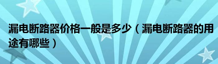漏电断路器价格一般是多少(漏电断路器的用途有哪些)