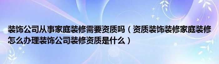 装饰公司从事家庭装修需要资质吗(资质装饰装修家庭装修怎么办理装饰公司装修资质是什么)