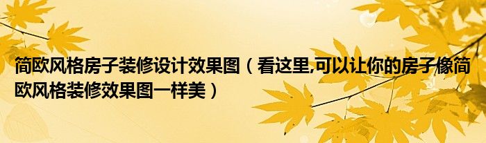 简欧风格房子装修设计效果图(看这里,可以让你的房子像简欧风格装修效果图一样美)