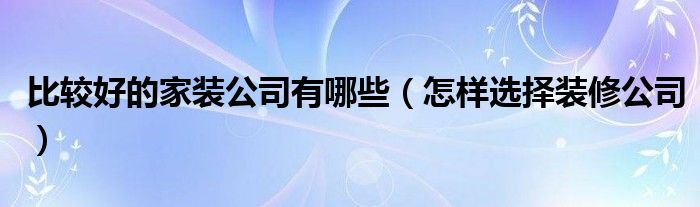大家好,今天乐乐来为大家解答以上问题。比较好的家装公司有哪些,怎样选择装修公司很多人还不知道,现在让我们一起来看看吧!