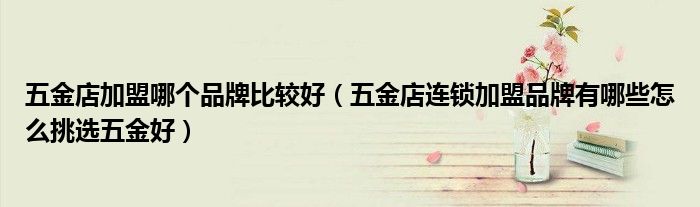 五金店加盟哪个品牌比较好(五金店连锁加盟品牌有哪些怎么挑选五金好)