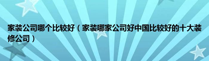 家装公司哪个比较好(家装哪家公司好中国比较好的十大装修公司)