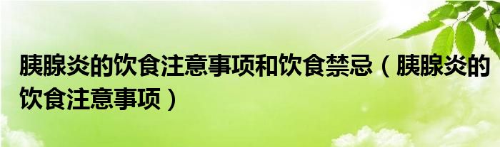 胰腺炎的饮食注意事项和饮食禁忌(胰腺炎的饮食注意事项)