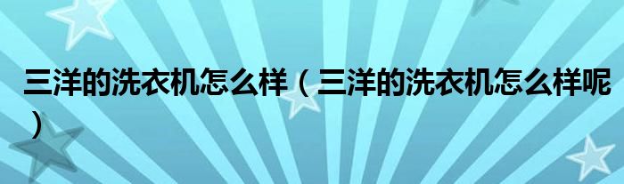 大家好,今天乐乐来为大家解答以上问题。三洋的洗衣机怎么样,三洋的洗衣机怎么样呢很多人还不知道,现在让我们一起来看看吧!